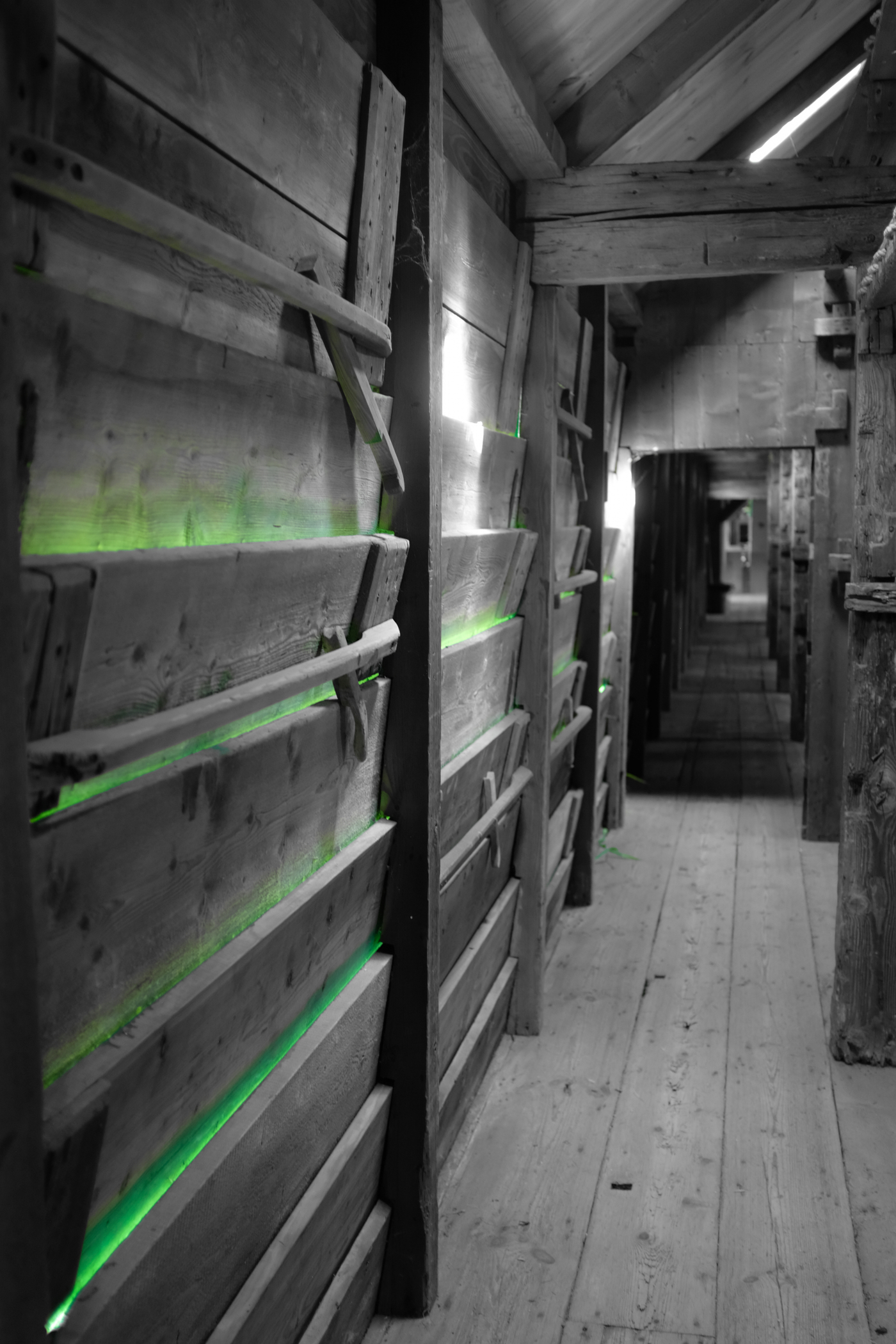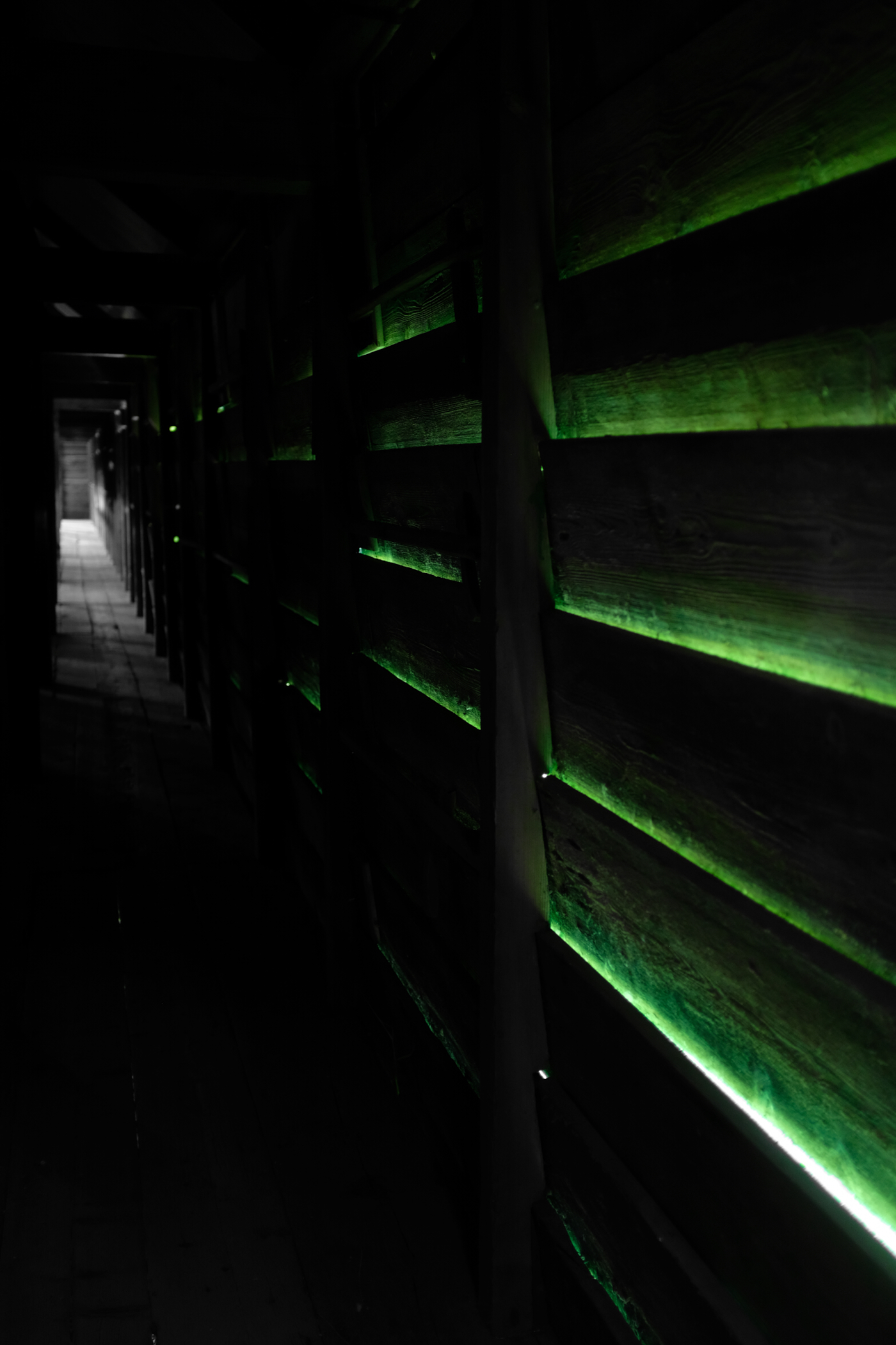 the green light in the following pictures was coming from the grass in the bright sunlight outside.