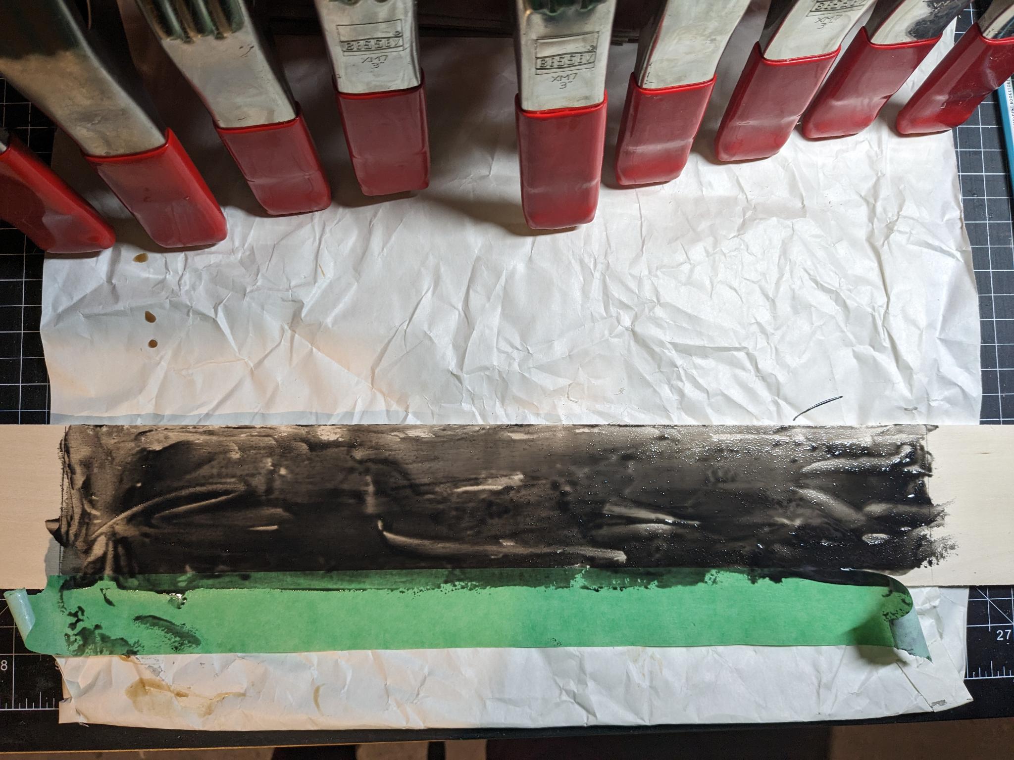 1) something about the tines are causing what appears to be too much paint being lapped up by the tines and causing streaks of carrageenan. i welcome any additional theories: currently my mitigating strategy is to try to put as little of the comb in the size as possible