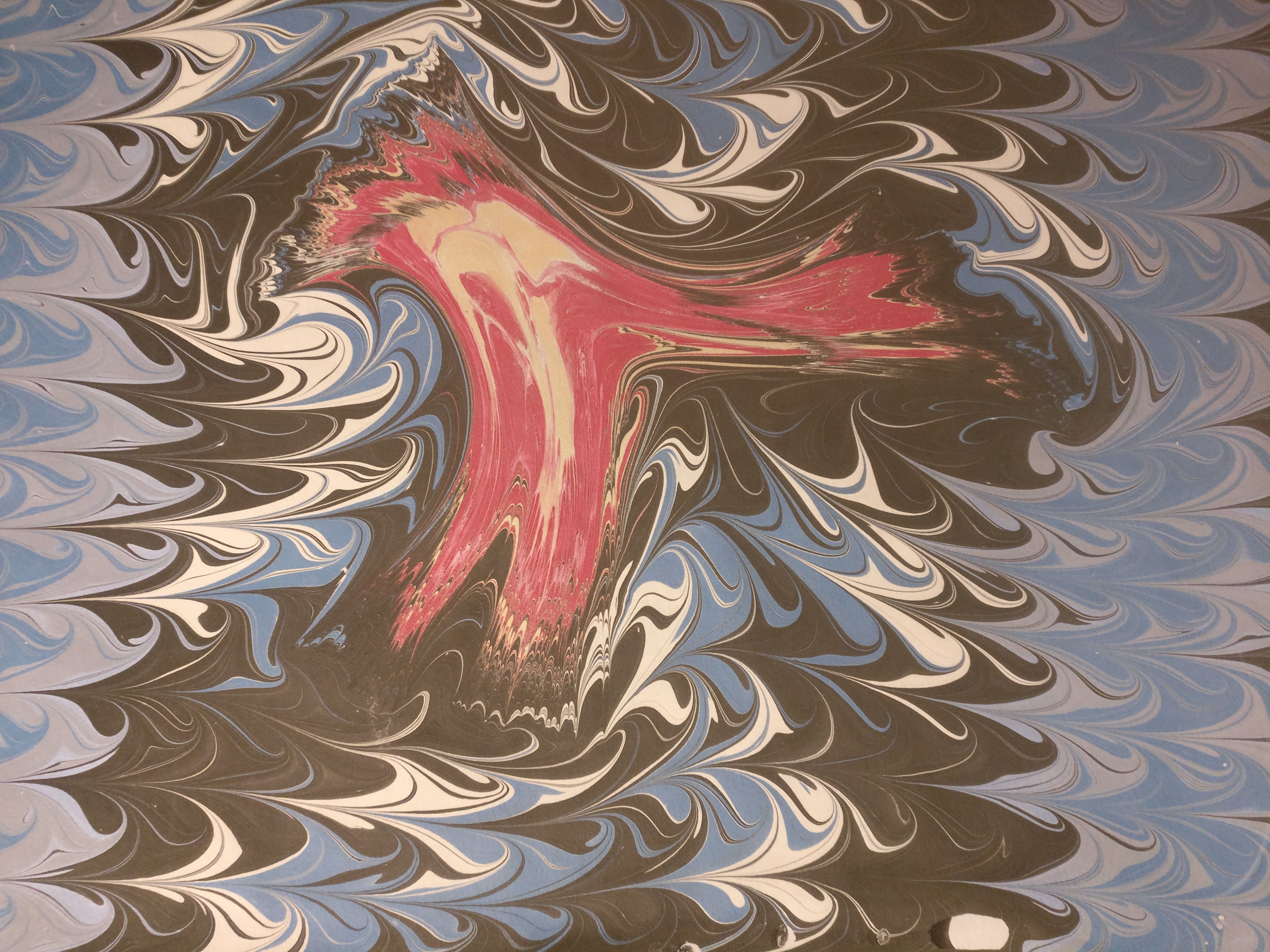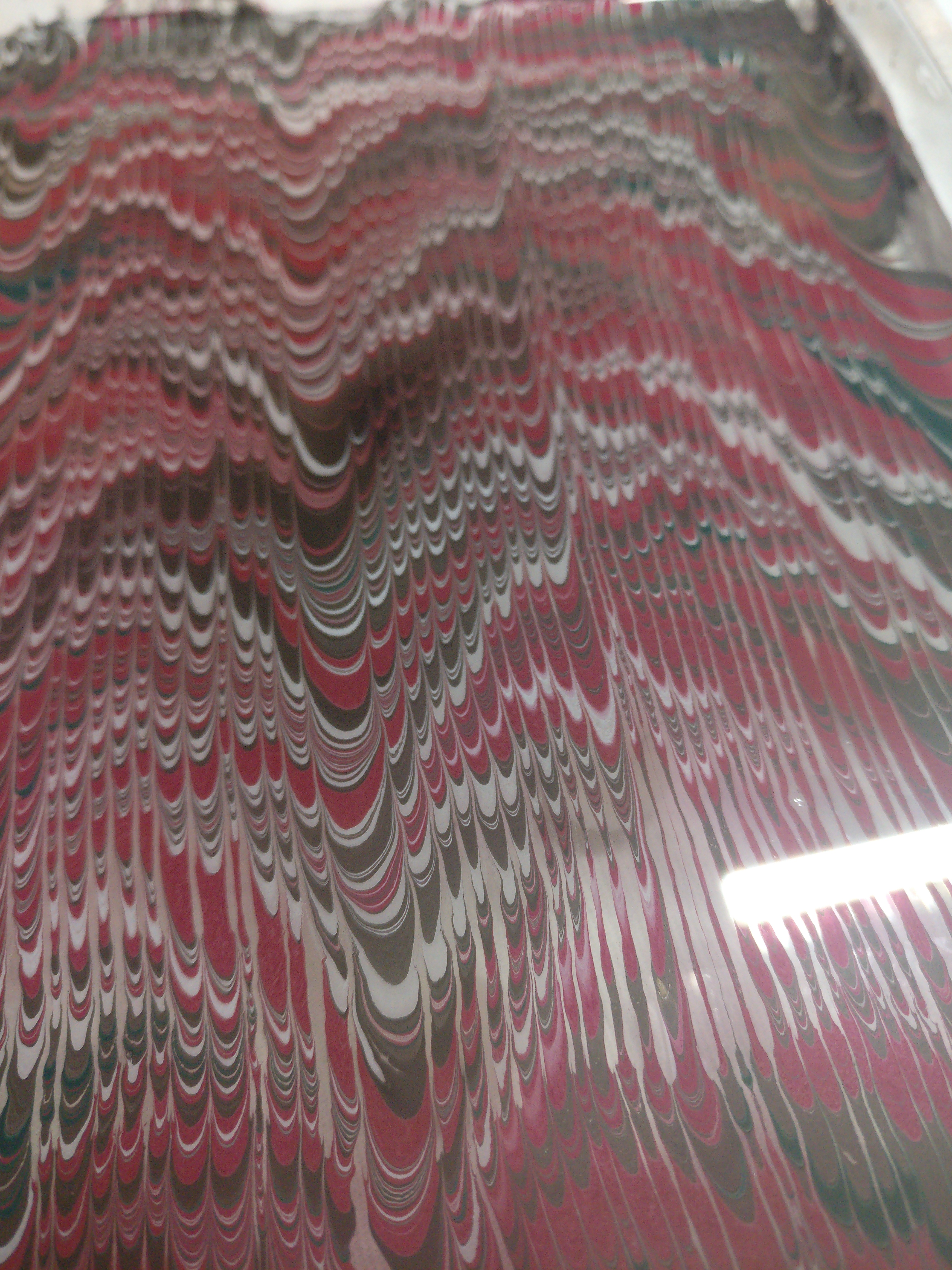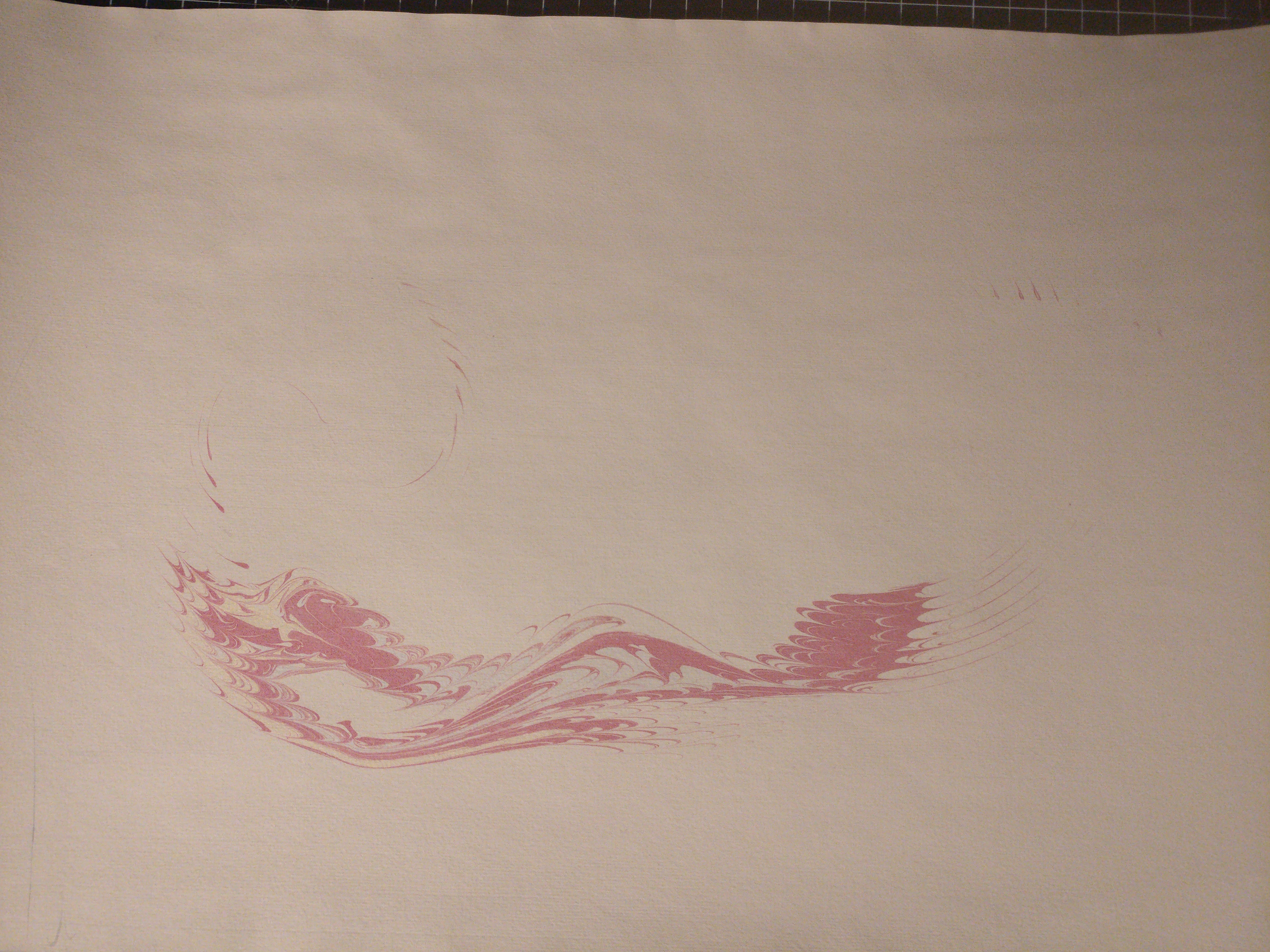 due to the small size of my test rake and the large size of the vat i was using (19 x 16), the first free-standing rake test i did was to use it like a stylus while making "fantasy" patterns. that is, free-form, not anchored to the sides of the tray.