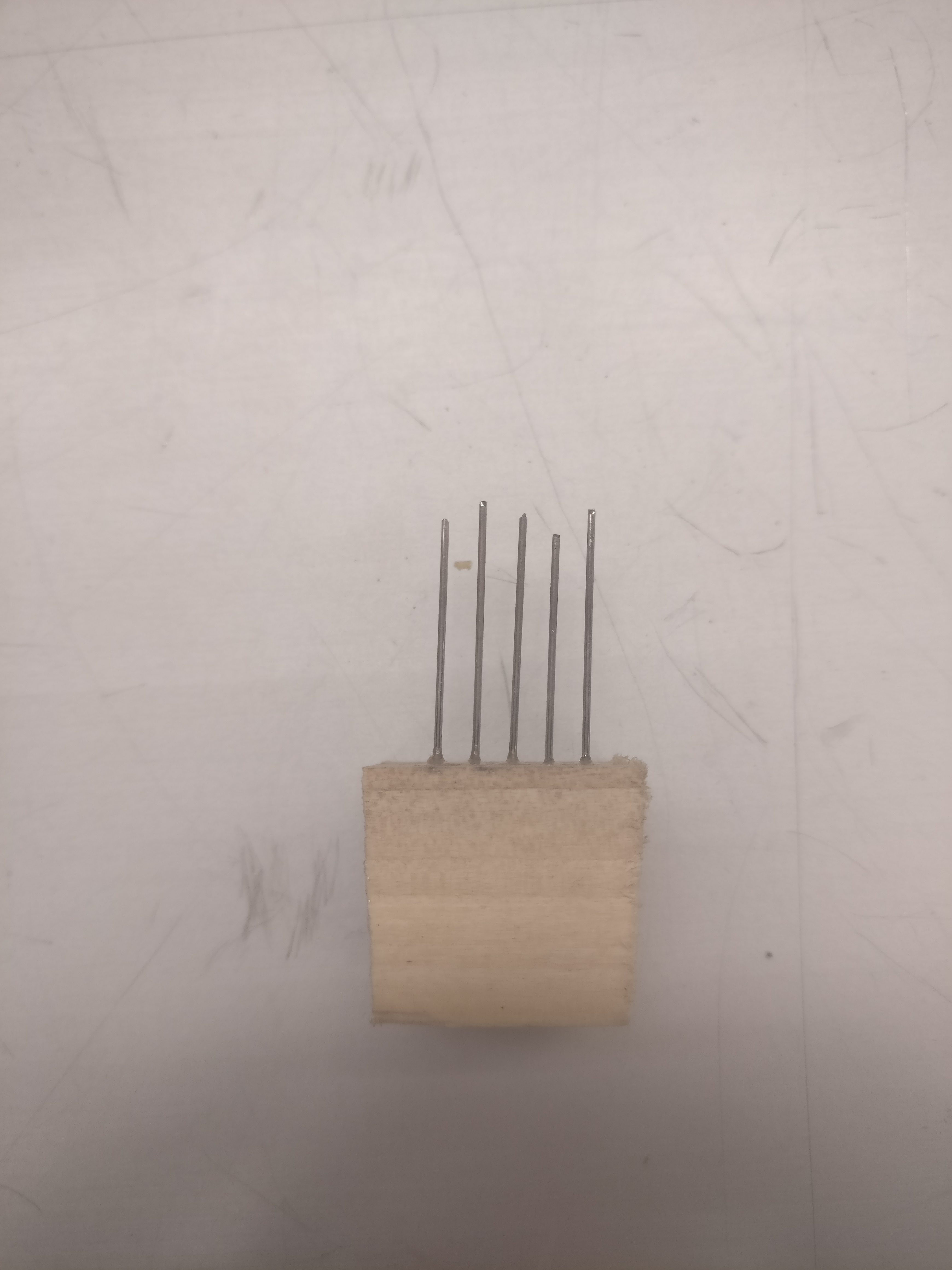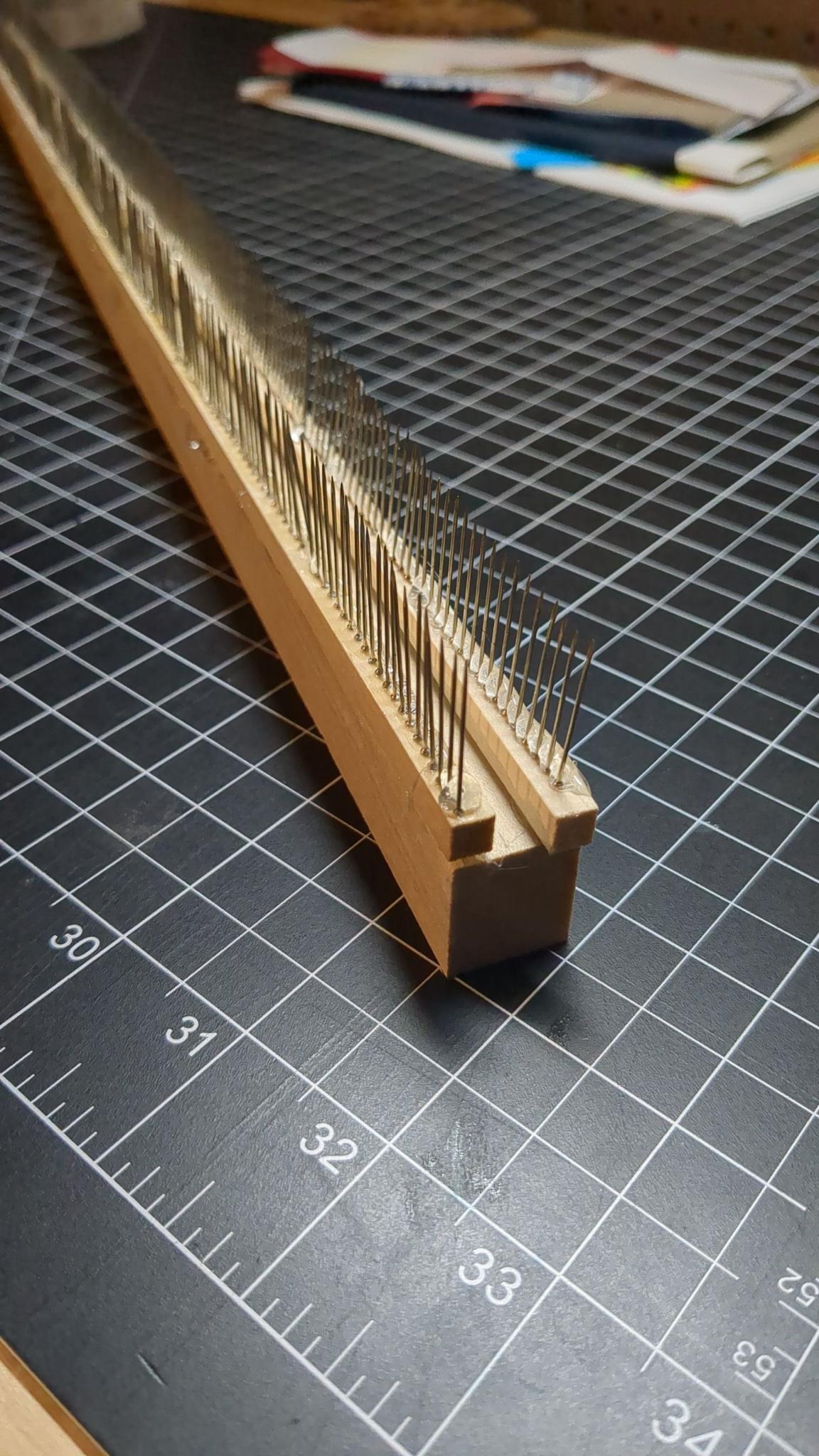it's important to make sure the pins are offset from each other (like a miniature bouquet comb), otherwise, you've just made a weird 1/8" comb – which is totally fair, but you probably didn't need to use two rows of pins for that.